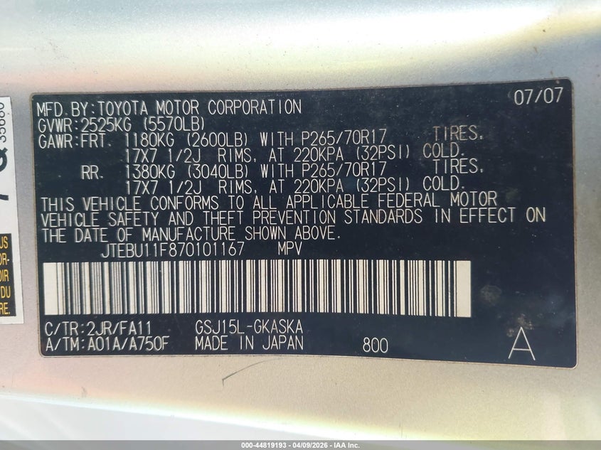 Auction date: